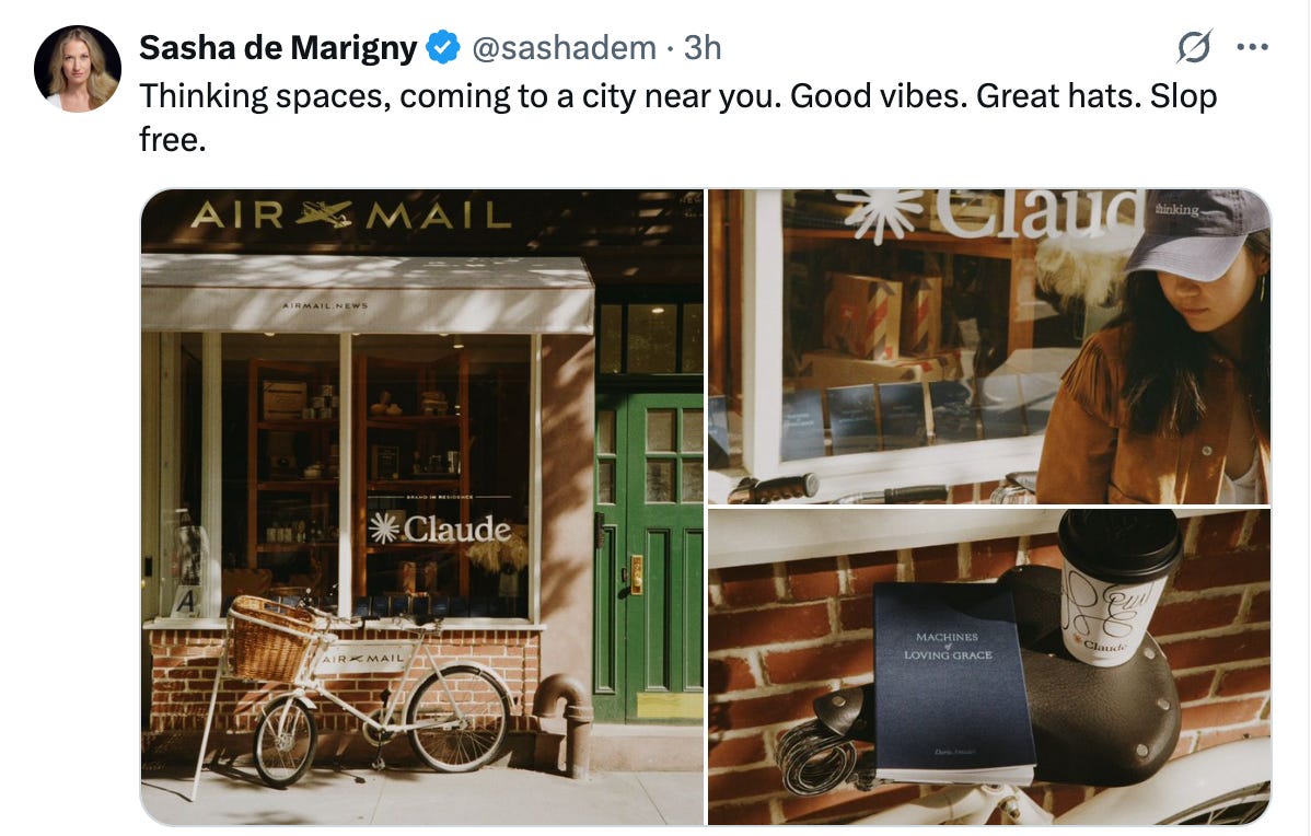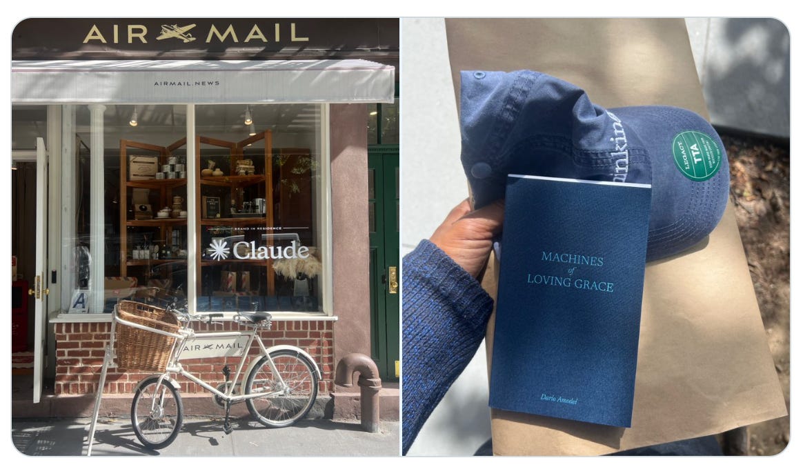 Meanwhile Anthropic responded with a pop up in the west village and the launch of their “Keep Thinking” campaign. “Thinking” caps, Machines of Loving Grace pamphlets, the aesthetics were on point. The humanists erupted in applause.